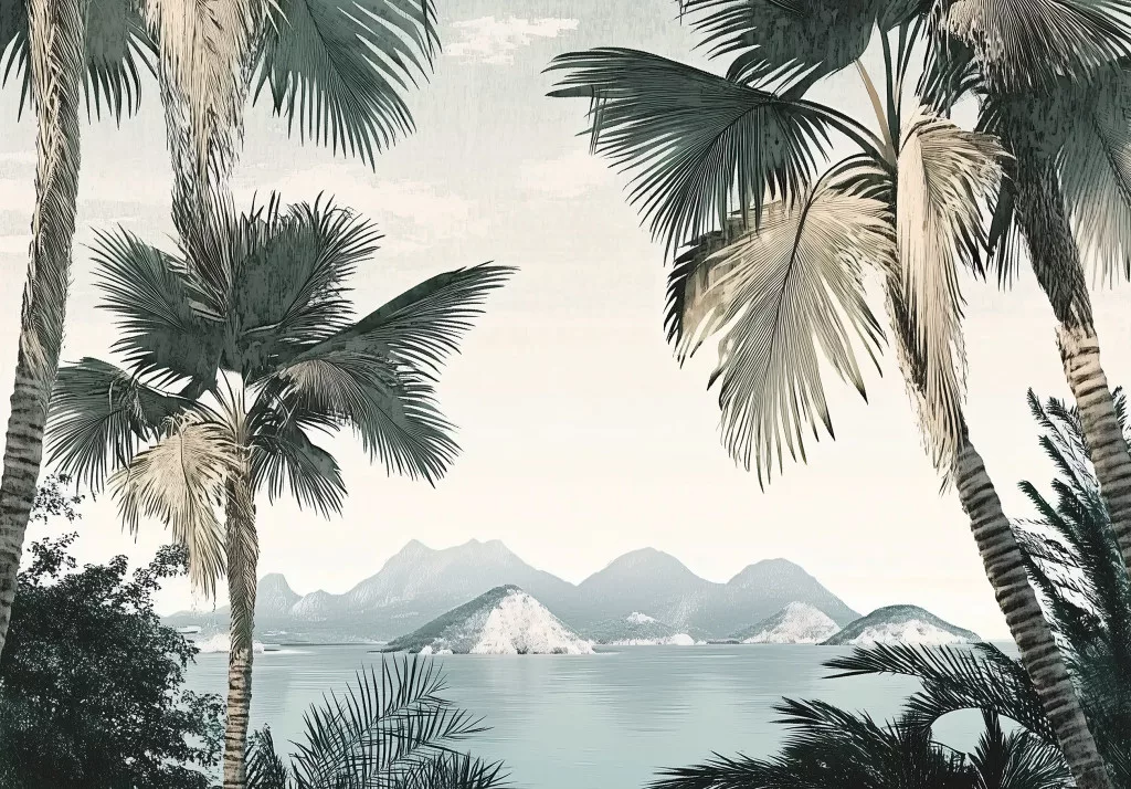 Hegyek a pálmafák mellől poszter, fotótapéta