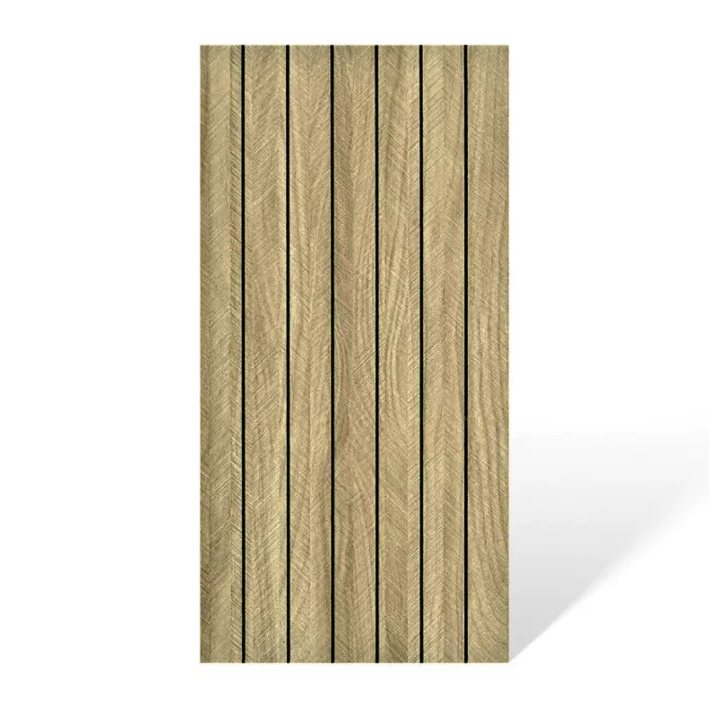 Valósághű fa hatású, pácolt tölgy lambéria mintás öntapadós dekorpanel, 3D-s bordázott felülettel és a deszkák közötti finom mélyedésekkel fekete színnel.