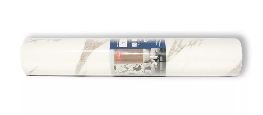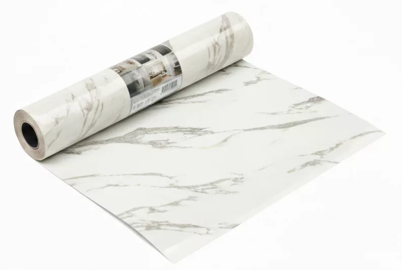 Márvány mintás öntapadós falpanel, fehér alapon, szürkés mintával.